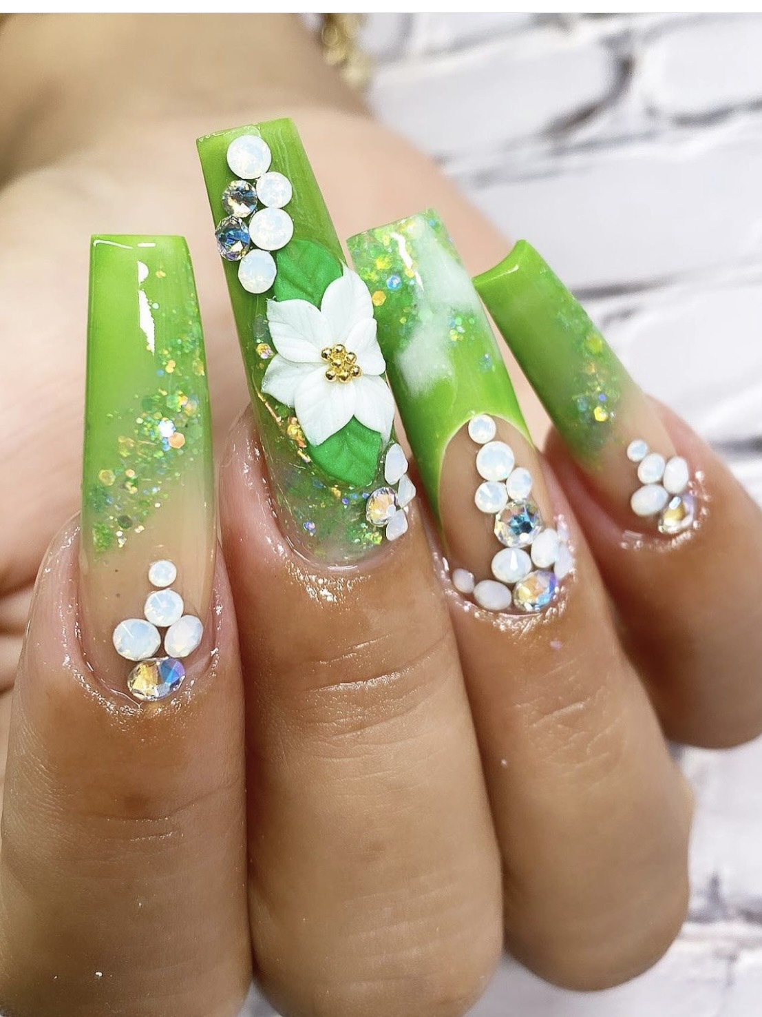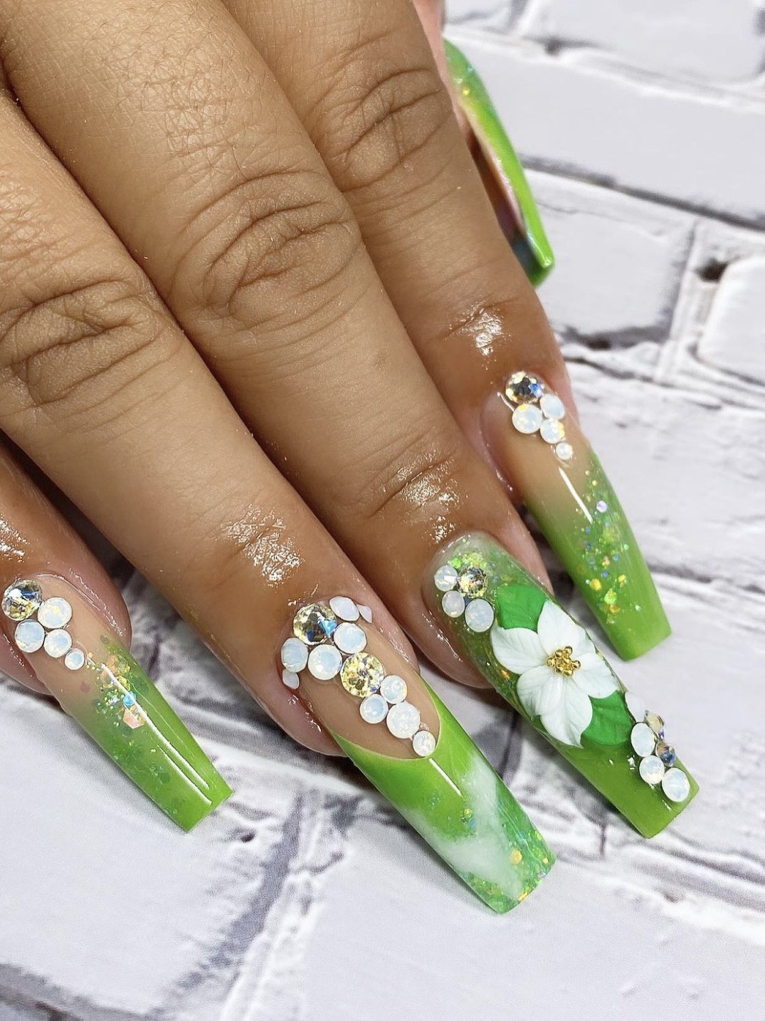 We recommend using a big bead of acrylic, glue gel, brush on glue or hard gel to adhere the 3-D Flower to the nail. The 3-D Flowers are very thin and easy to encapsulate.