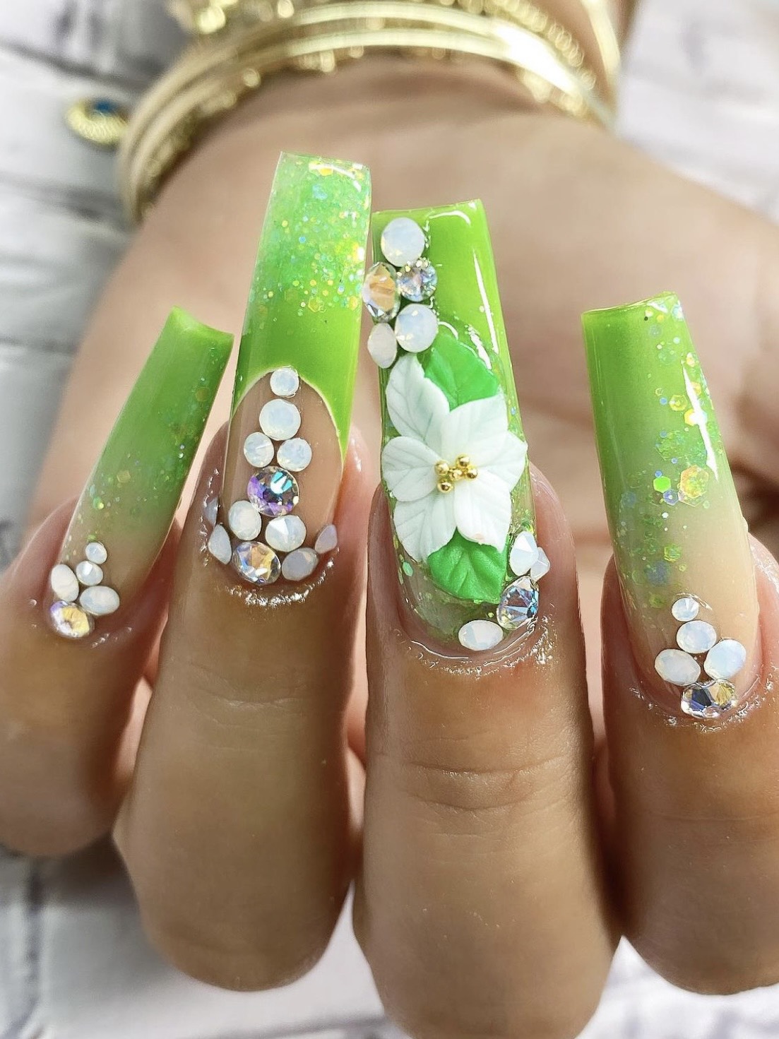 To remove the 3-D Flower, use an old cuticle clipper to clip at the sides until they pop off. Finish the removal with an electric file until it is smooth.