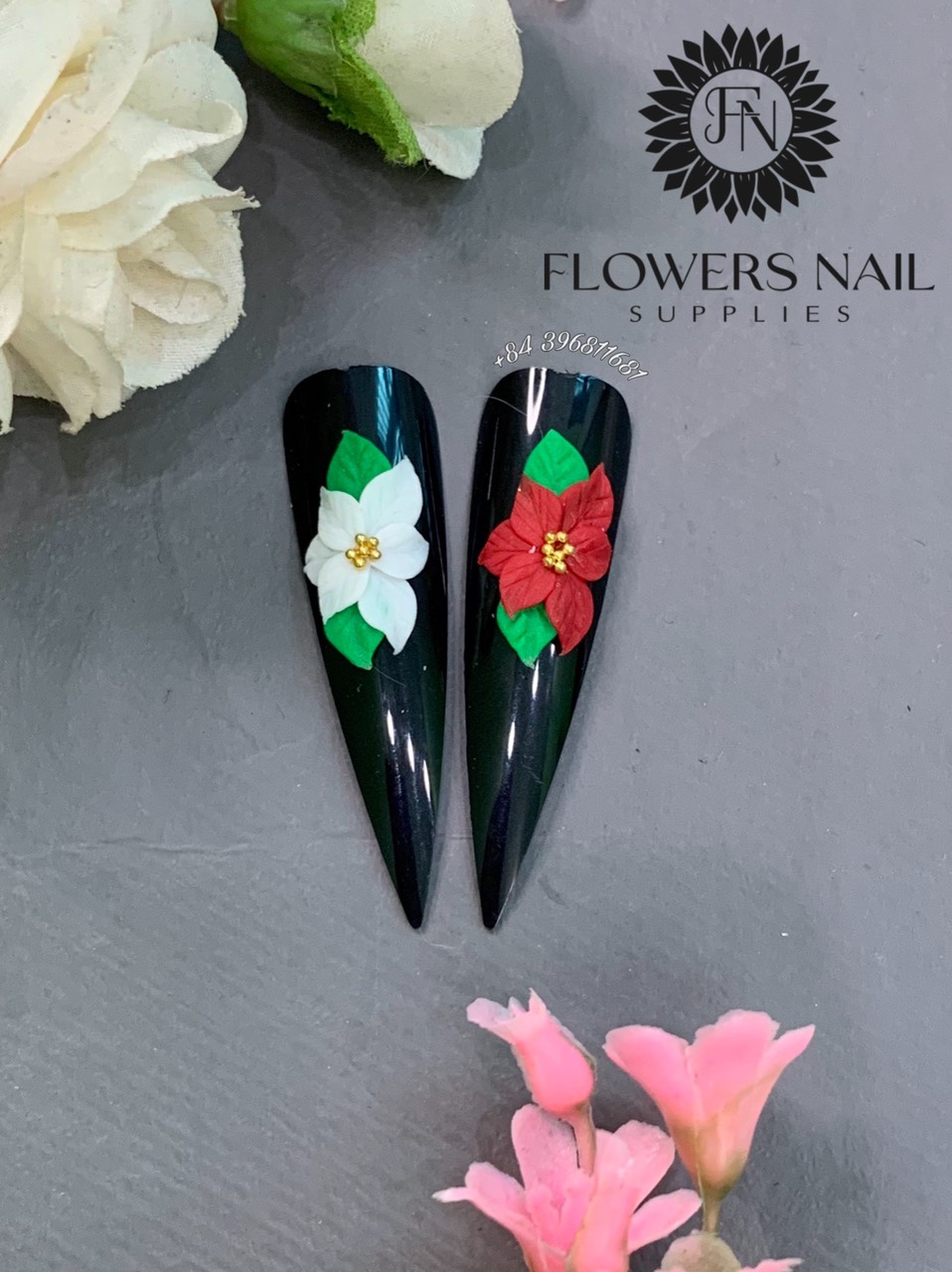 3D Christmas Acrylic Flowers Charms | Handmade | 3D Nail Charm| Holiday Nail Art| Xmas Nail