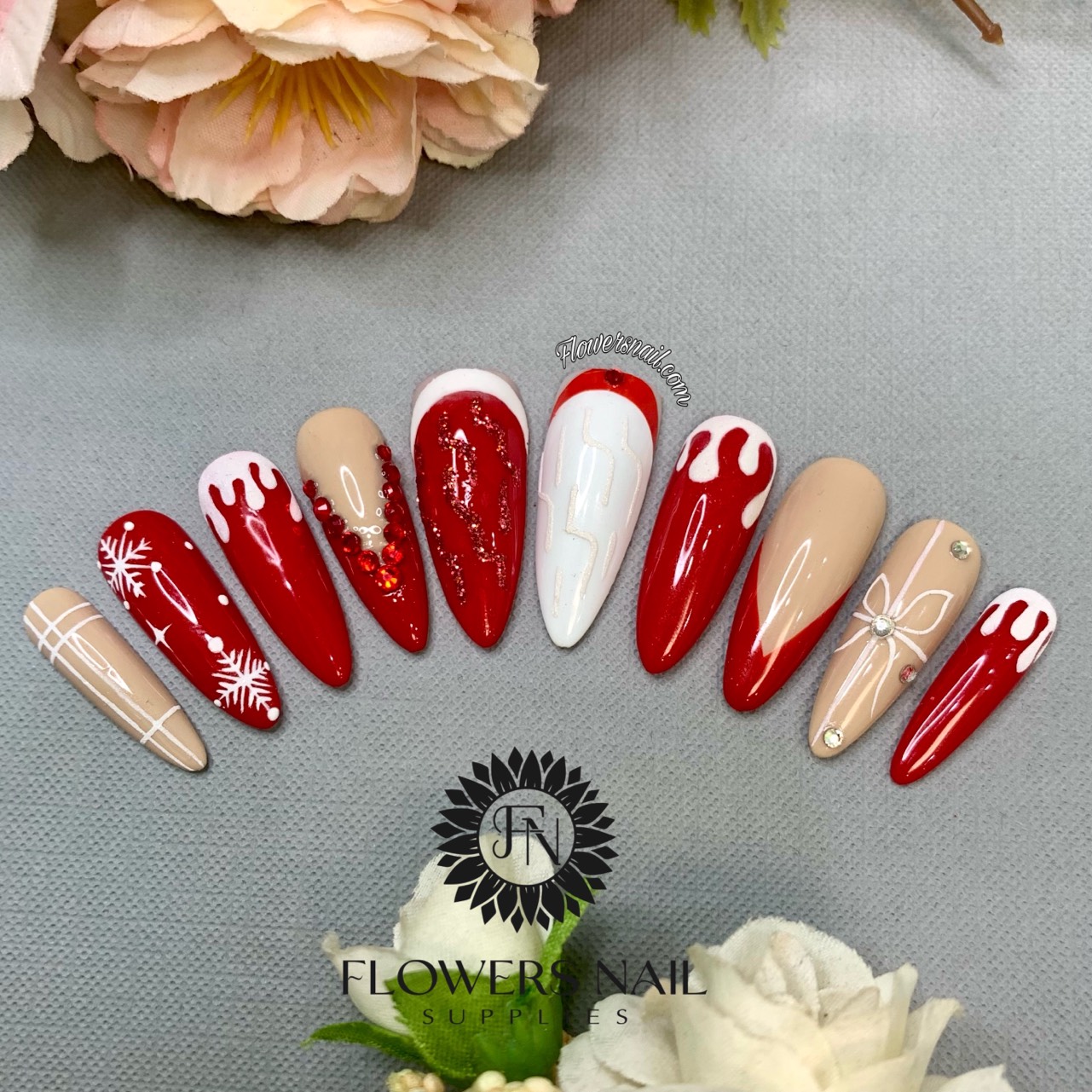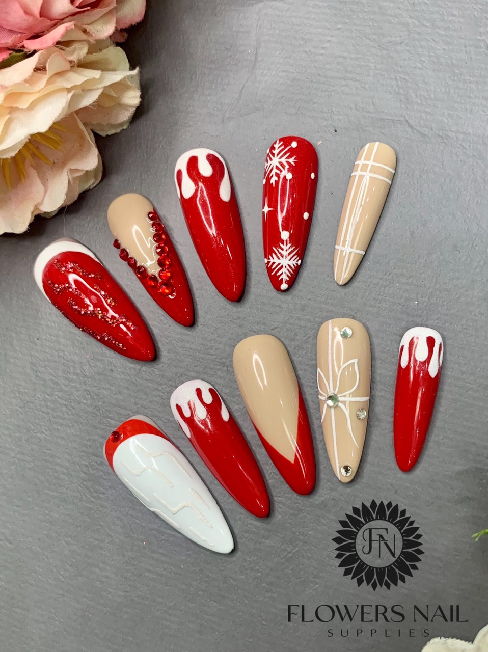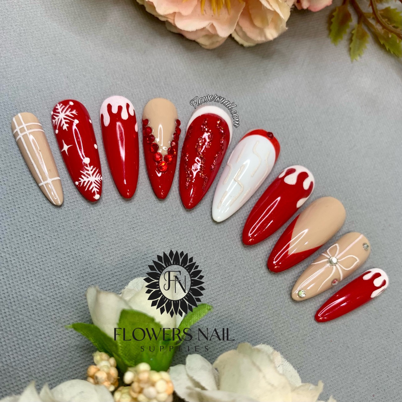 Handmade Press On Christmas False Nail Tips Holiday Easy-Way Nail Tips
