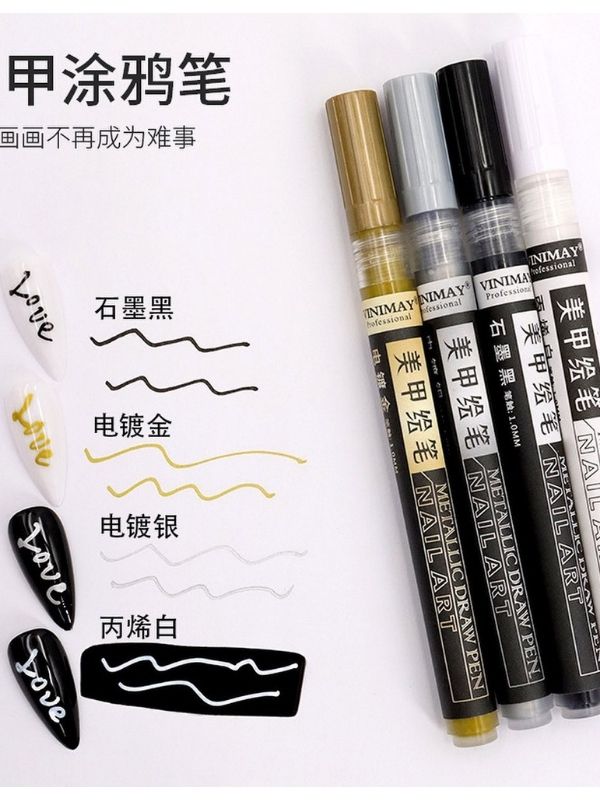 Nail Art Pen – 4 Colors: White, Black, Silver, Gold